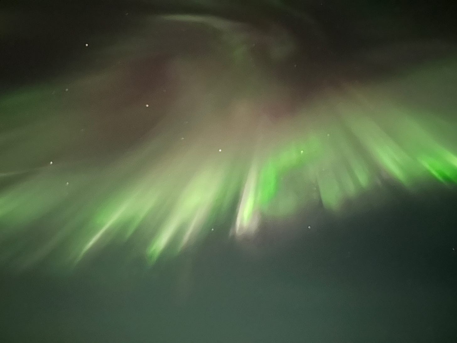 And now was the moment we’d traveled all this way, to see the Northern Lights. Each breath we took standing in the freezing parking lot was like swallowing a hornet, but the cold was to be dealt with, a small price to pay. Again, so we were told!